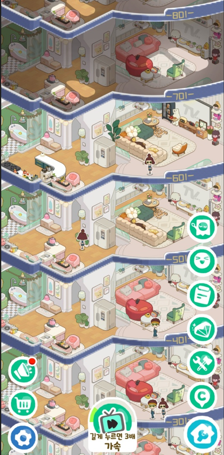 일반 건물과는 다르게 더블 아파트부터는 세입자를 2명씩 모집할 수 있습니다. 원하는 지역의 세입자를 2명 모집하는데 이따 세입자별로 부대시설과 룸 컨디션 가구에 따른 요구가 다릅니다. 그로 인해 임대료 부당 상한선이 있기에 안정적인 직장인을 모집하는 것을 추천합니다. 임주민들의 소비 수요를 충족시키지 못해 만족도가 떨어지면 임대료 보너스 또한 내려가게 되니 불만이 생기지 않게 잘 확인해줘야 합니다. 불만상황이 생겼을 때 그 즉시 바로 문제를 해결해 주면 고객의 만족도도 다시 올라가게 됩니다. 차곡차곡 업그레이드를 해주면 동네 번영도 레벨이 올라서 해제 가능한 지역과 가구 옵션, 다양한 세입자들을 만날 수 있게 됩니다.