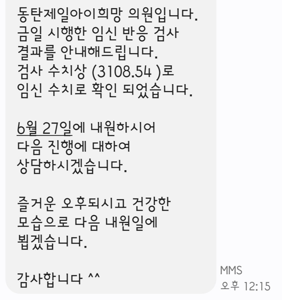 오전에 1차 피검 후 오후 전화 옴. 피검수치결과 305.68 안정적인 수치의 임신 확인.