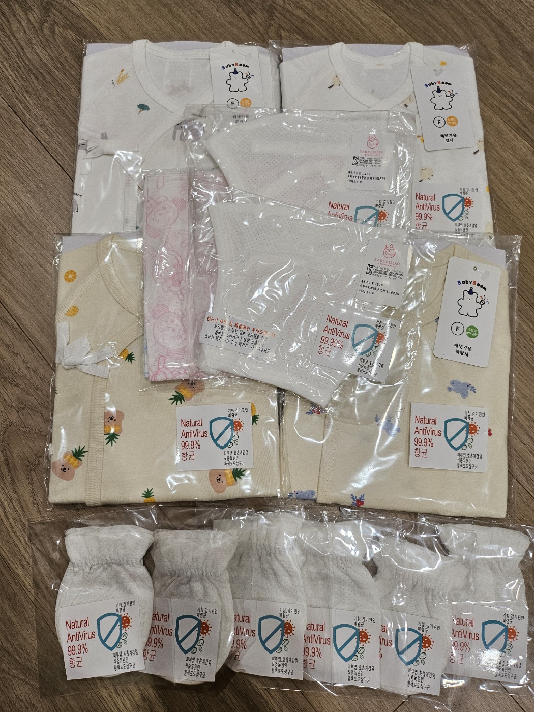 - 바디슈트, 속싸개, 손싸개, 발싸개, 모자 등